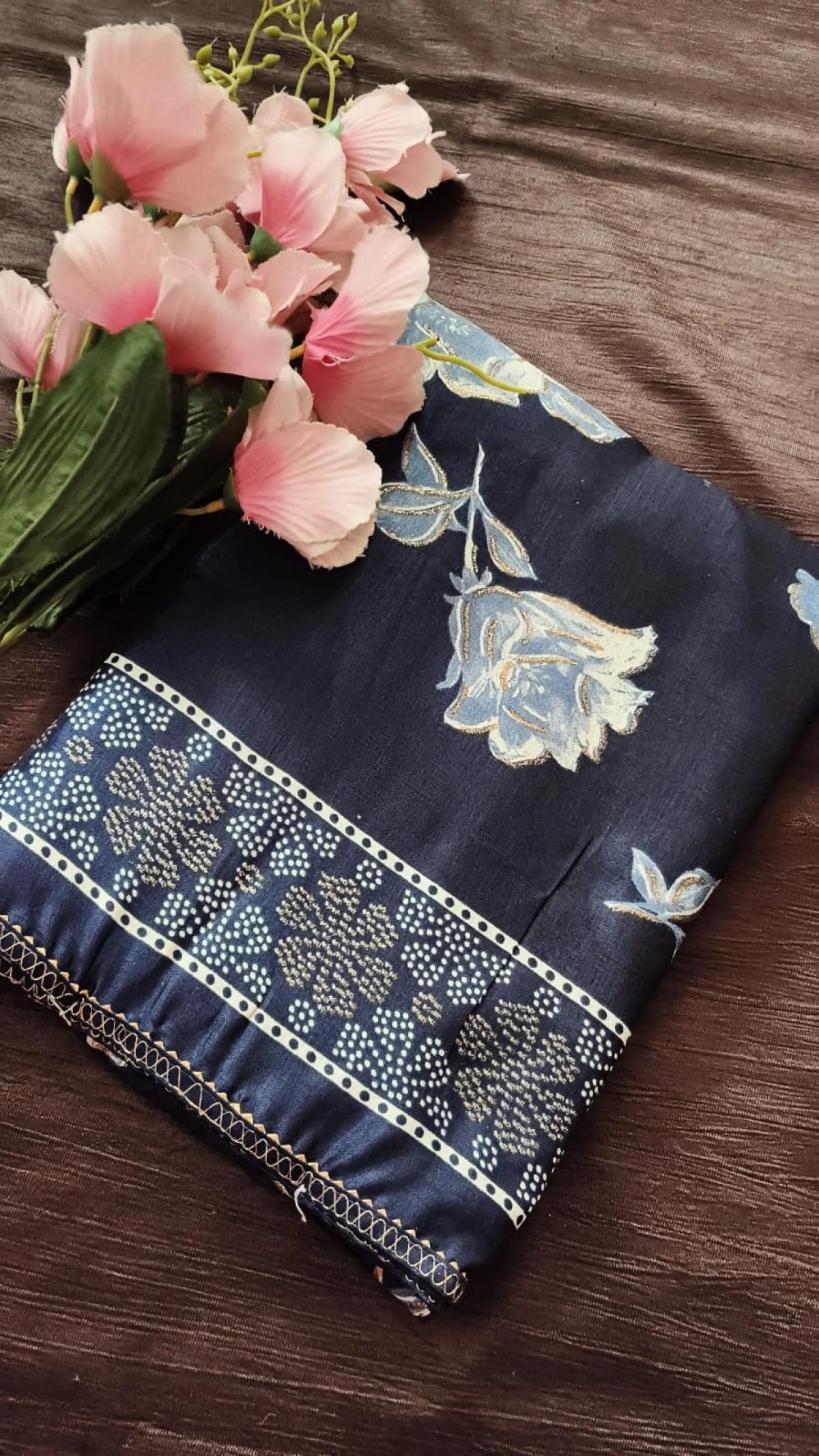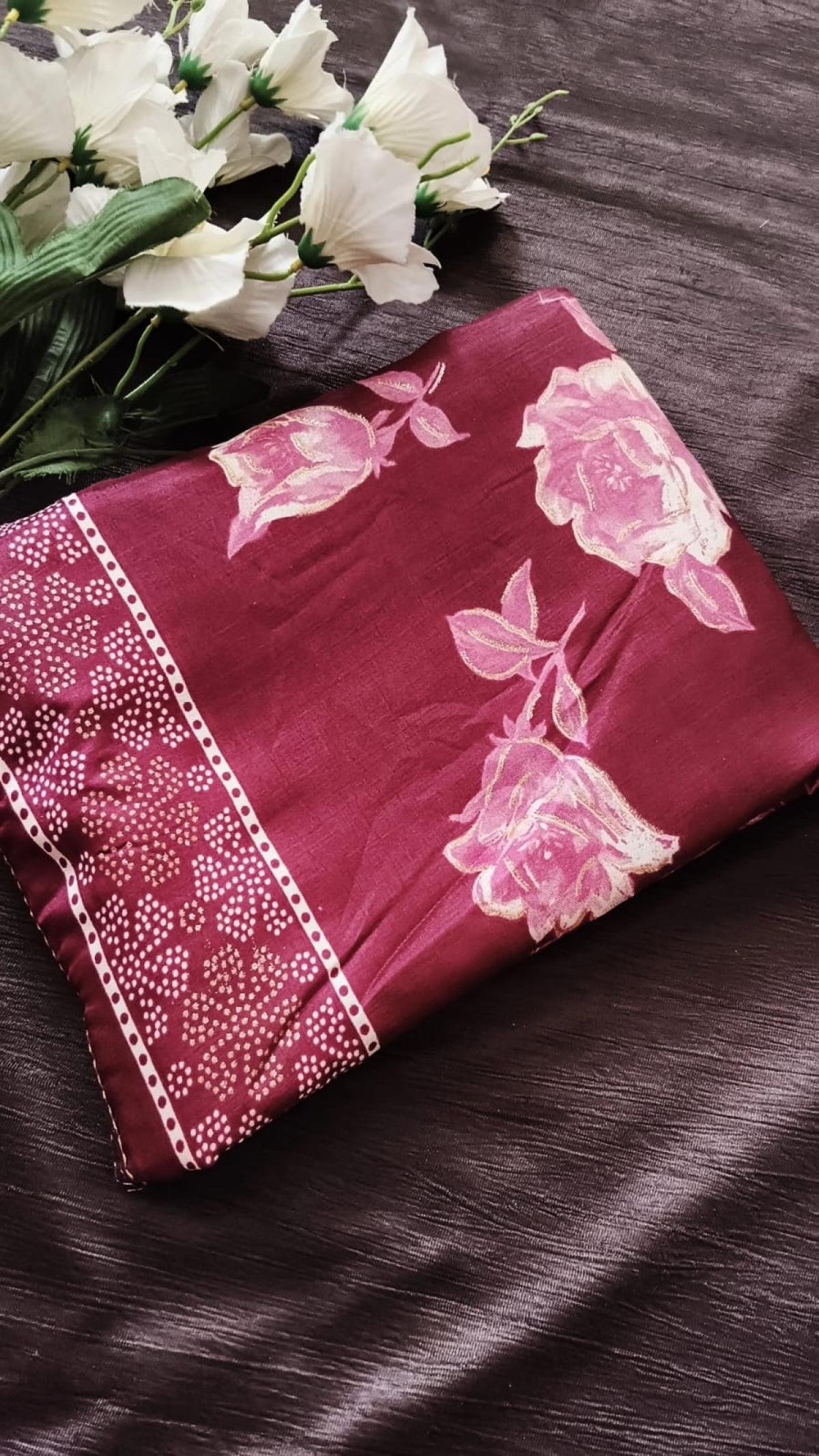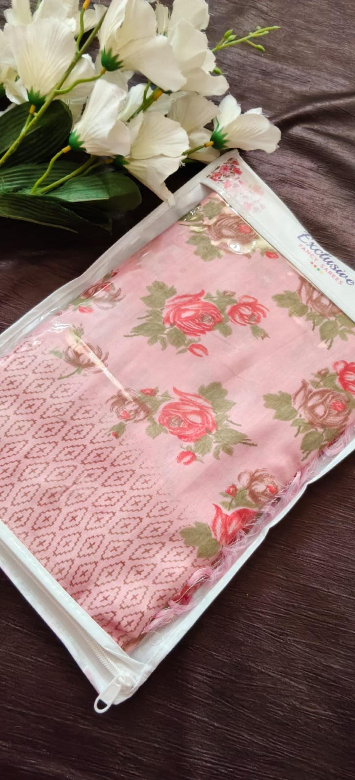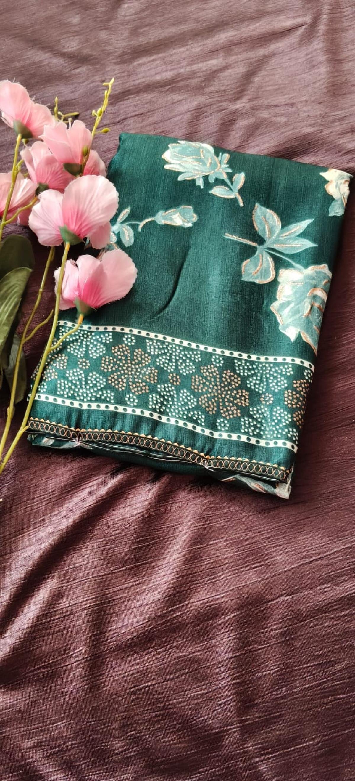 Satin with Digital Flower print Saari with Blouse