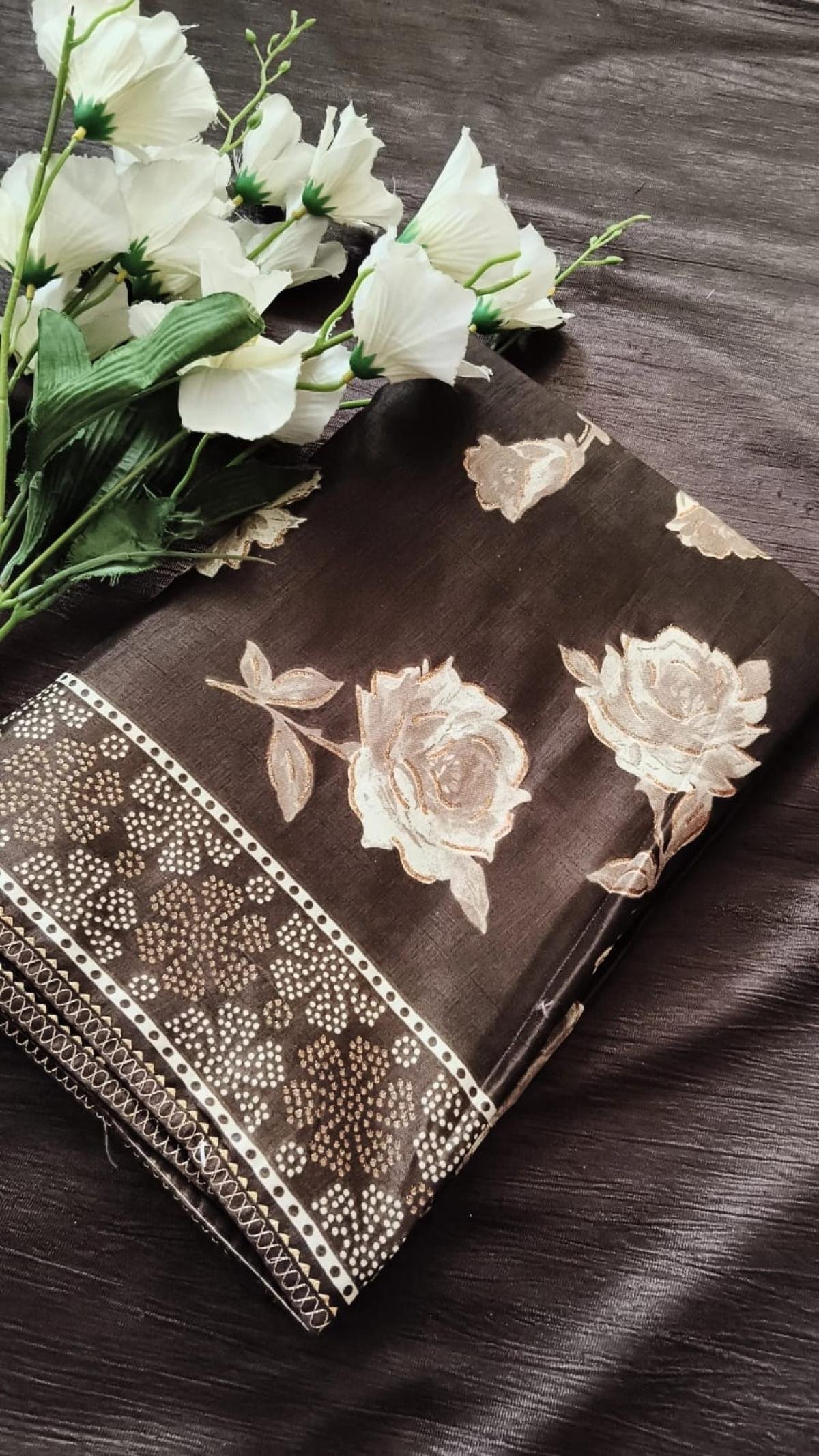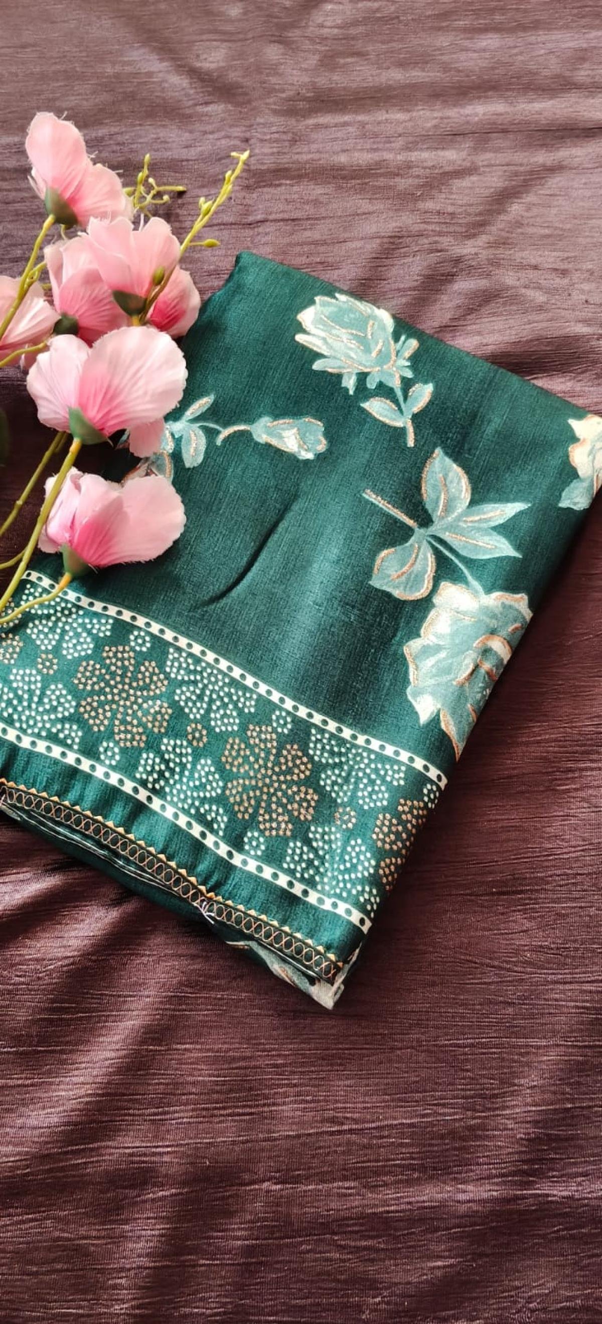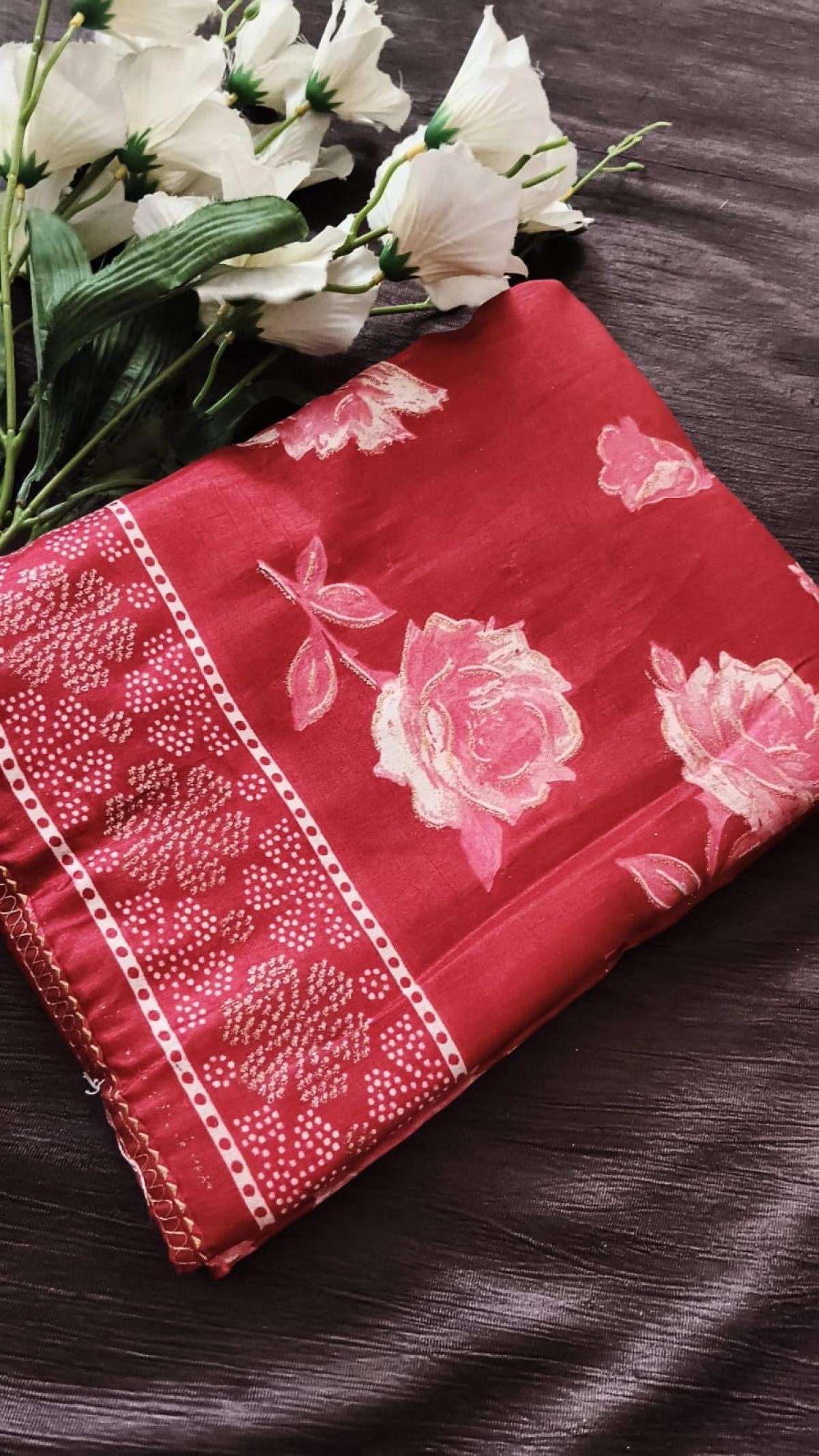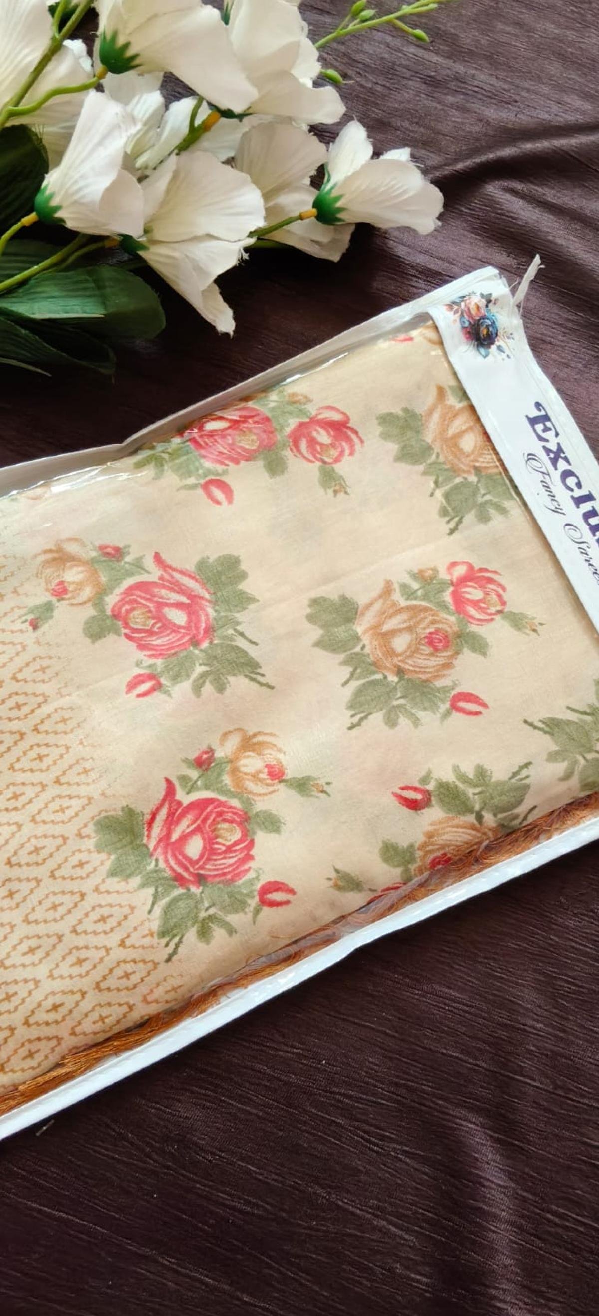 Satin with Digital Flower print Saari with Blouse
