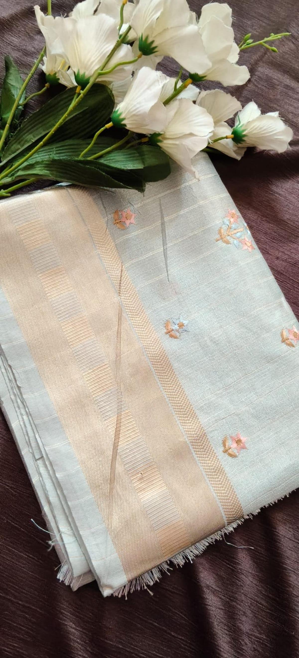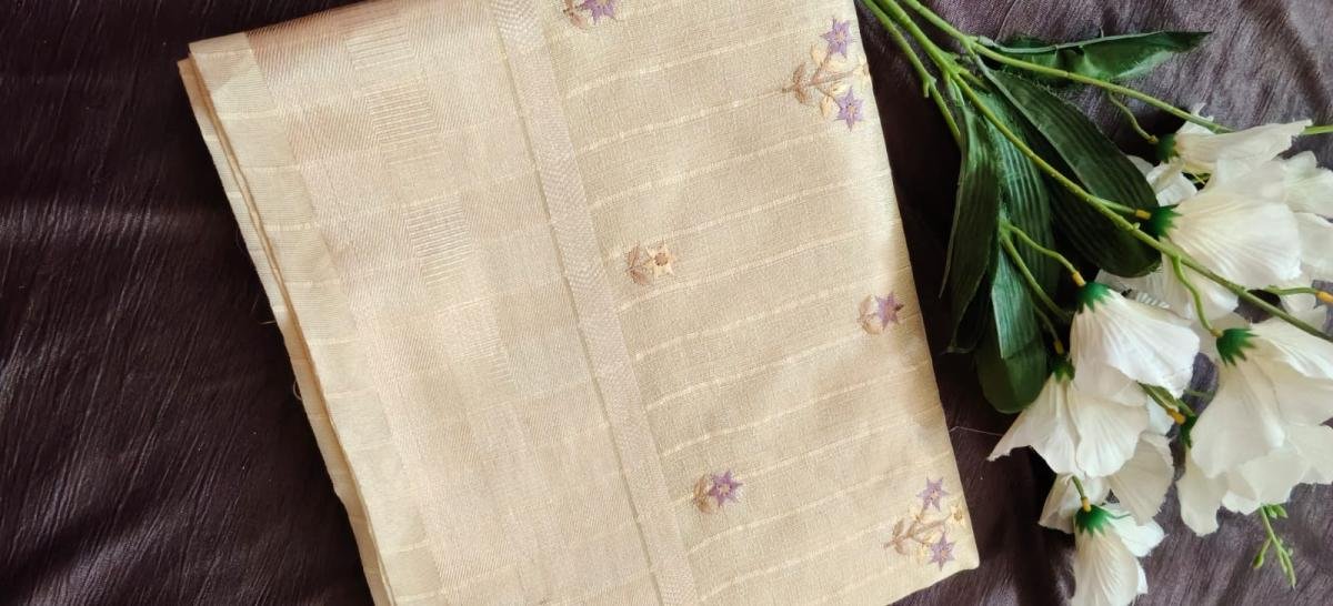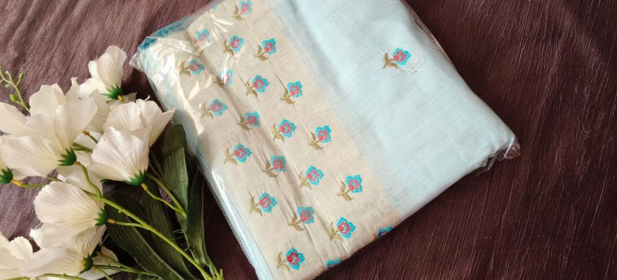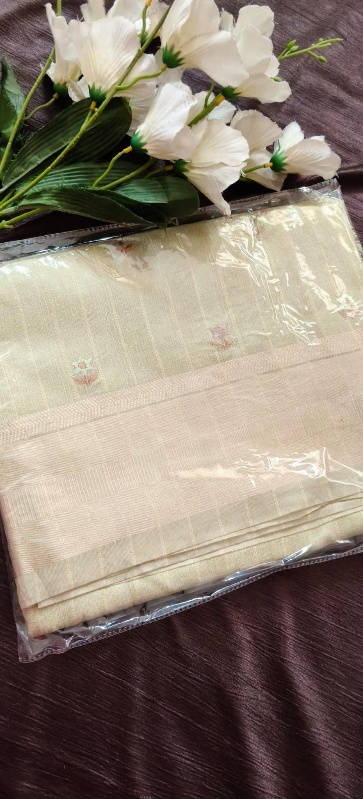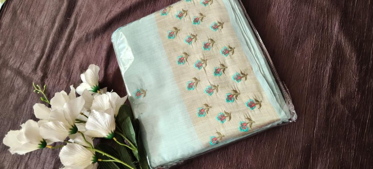 Cotton with Zari Border Saari with Blouse [ With Thread Work ]